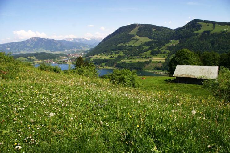 Sie müssen nur 300 m über unseren Feldweg nach Ratholz und schon finden Sie die schönsten Rad- und Wanderwege in Richtung Alpsee.